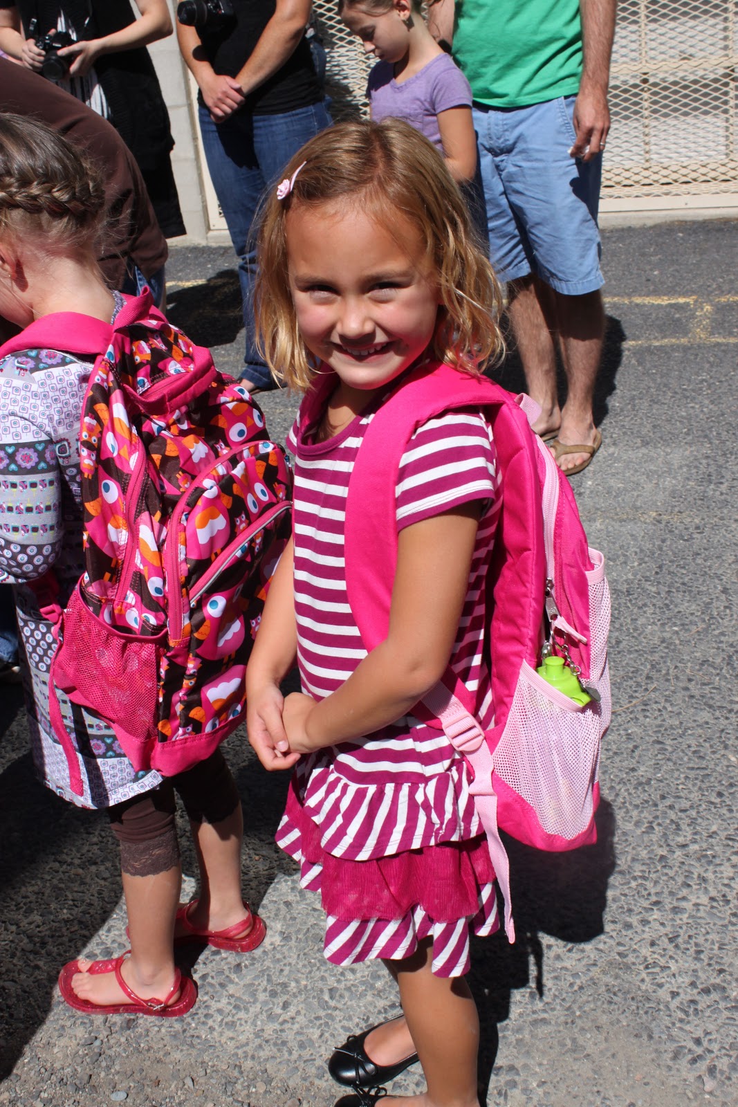 Emma's first day of Kindergarden was perfect. We woke up in the morning and had special pancakes for breakfast. It was not rushed as Emma goes to afternoon kinder so she doesn't have to be there until 12:30 and gets done at 3:00.